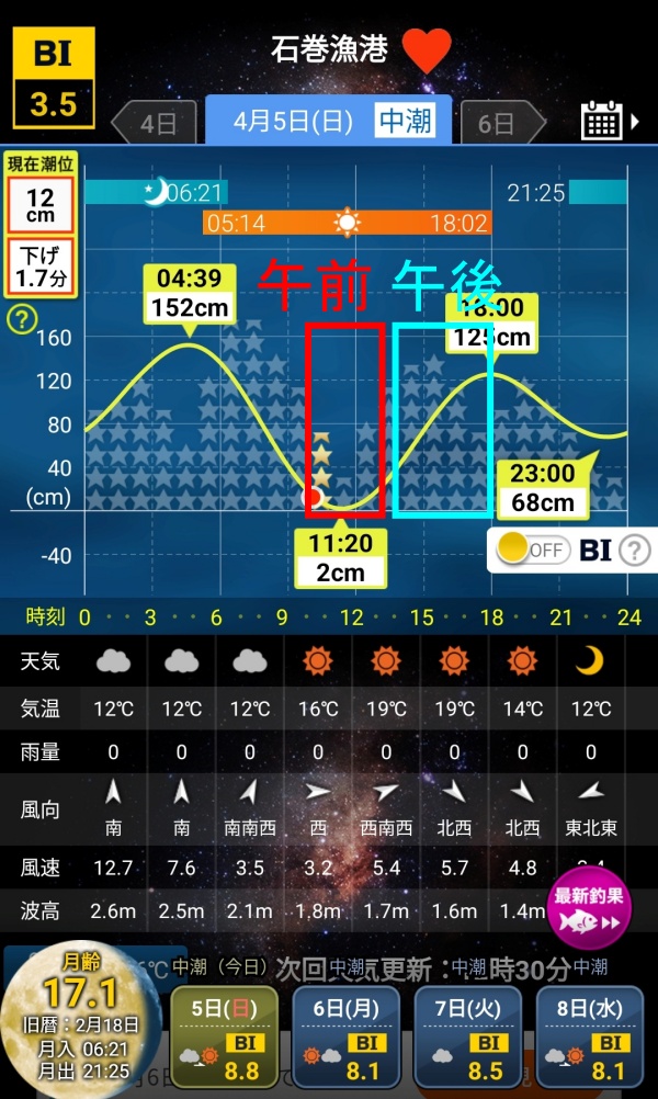 2026年4月5日(日) 釣行約7時間半(約10~18時)